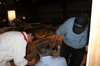 Pastor called a work night for Tuesday (yesterday) and although it doesn't appear like much got done, there were some milestone items that did. The pad for the outside air handler is framed and ready for concrete, the platform subflooring was started and the sound room was cleaned out in prep for the subfloor. A couple of the men got the last bit of insulation installed for the framing inspection. The ladies did a superb job of cleaning up the men's messes. It was a good night.